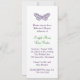 En känslig skisserad fjäril på ett enkelt men sofistikerat sätt lägger till framsidan av inbjudan. Baksidan är dekorerad med samma stil av filigree, fjärilar under flygning. Den här repetitionsmiddagsinbjudan är en del av Heart's Flutter Bröllop Collection. Det visas på den grundläggande pappra, men jag rekommenderar att pappra av linnen väger och struktur.