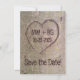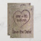 Visa din känsla av stil och eko-chic med coolans faux-hjärta i en träd spara datum meddelande-design. Spara i träd genom att använda denna bild av ett hjärta som skrapats eller graverats in i det mjuka träet från en skogsfågel träd. Underbar för ett eko-, natur- eller skogstema som kallas bröllop, förlovning eller speciell händelse. Kärlek, skogen, träd och jorden, liksom er kära? Copyright © www.CustomInvitesOnline.com