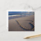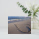 Hand plockade hjärta på sanden. Tropiska stranden där vågar tvättar på stranden.