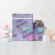 Lila fläckar mönster med grattis på födelsedagen och hjärtballonger. Text kan redigeras.