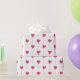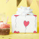 En ren illustration av en handdragen röd hjärtformad ballong bunden till en svart sträng på vit bakgrund