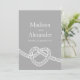 Enkel modern grafisk skiss hjärtformade gifter sig bröllopsinbjudan i tidlöst grått och vitt. Gifter sig är en klassisk symbol som visar att två förenar sig i en sammanflätad varaktig enighet. Sarah Trett skisserar grafik och design.