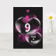 Rosa hjärtan och vita halvgenomskinliga hjärtformade bubblor för 9-årsdagen mot svart bakgrund. Texten kan redigeras för valfritt bröllop-år firande. Namn kan ändras. Den svarta bakgrunden färg kan ändras.