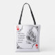 Hjärter Dam Alice Handväska. © Radenbrea Studios på Zazzle. Bilden finns på både baksidan och framsidan av handväskan. Liksom med nästan alla mina produkter kan den anpassas. Du kan lägga till din egen citat, namn eller initialer för att göra den unik om du önskar. Perfekt för shopping eller för att bära din yogautrustning till din träningspass.
