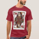 Denna stilrena t-shirt har en invecklad design inspirerad av hjärter dam från en kortlek, som blandar kunglig heraldik med en modern illustrativ kant. Den djärva karmosinröda och gyllene färgpaletten framhäver en trotsig dam som håller en ros, placerad inom en utsmyckad vintage-filigranram. Denna grafiska tee-shirt av hög kvalitet ger en sofistikerad estetik för fans av klassisk kortlekssymbolik och gotisk romantik. Perfekt för ledig klädsel, ger det konstnärliga utförandet en professionell, iögonfallande look.