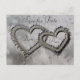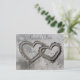 Det här vykortet innehåller en bild av två hjärtan som ritas i sanden, där anpassadet sparar datumet och texten i namn. Även texten på baksidan kan anpassas.
