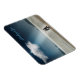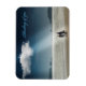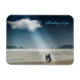 frihetsstunder på en walesisk strand. Vänner går vid surfan och belyses med ljussken genom ett celestialt moln.