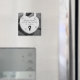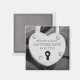 Hjärtformen kärlek låser foto Spara datum magneter. Romantiskt svart och vitt foto nära flodbron. Anpassningsbar med bröllop-datum och namn av brud och groom. Temadesign romantik/giftermål. Tangenthål med elegantens skripttext.