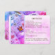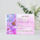 Detaljkort med mottagning och boende för gästen. Vacker design med en orange fjäril som rör vid vita hjärtformade pärlpärlor. En annan fjäril smälter in i buketten av rosa, lila och blå rosor. Pergamentpappersbild. Konvertera detta för alla tillfällen. Lägg till ett foto och/eller ändra texten.