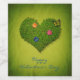 Lustigt romantiskt illustration: hjärtformad gräsmatta med blommor och fjäril på gröntens grungande bakgrund.