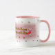 Hjärtformade tvålbubblor på en vit Rosa keramik Mugg