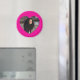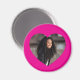 Varmt rosa hjärtformad ram för ditt digitala foto på en rund magnet.