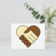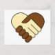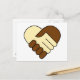 En svart man och en vit manar som skakar händer. Hjärtformade symbol eller logotyp på vykort