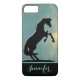 En grönt av mistlig gult med en hästs svarta silhuett. Anpassa med ditt namn. Ha mer än en fodral för att passa din stil eller humör för dagen. Designad av Robin Cox.