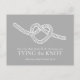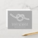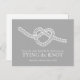 Enkel modern grafisk skiss hjärtformad knut bröllop spara datum postkort i klassisk grå och vit. Att knyta knuten är en klassisk symbol för att visa enheten av två till en varaktig enhet. Enkel knut skiss grafik och design av Sarah Trett.