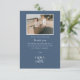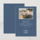 Dela ett hjärtligt tack med denna eleganta bröllopsfotodesign i marinblå med en ren modern layout och klassisk serif-typografi. Den djupblå ramen inramar det älskade parporträttet för en tidlös, romantisk look. Perfekt för strand-, kust- eller klassiska bröllop med en lugn, förfinad stämning.