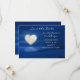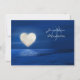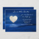 Det här vinter-Save the Date-bröllopsinbjudan har en hjärtformad måne över en vattenmassa med en snötäckt strand. ^