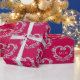 Hjärtmonogram guld på berött bröllop presentpapper