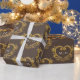 Hjärtmonogram guld på mörk brun bröllop presentpapper