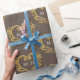 Golden påverkar hjärtmonogramkonst på mörk brun presentförpackning papper. Utformning av hjärtan som innesluter ditt eget par monogram initialer i guld och vitt på en mörk brun eller förändring till ditt eget färg val. Andra färg och matchande artiklar är tillgängliga. © Original hjärgrafik art and design by Sarah Trett for www.mylittleeden.com on Zazzle.