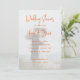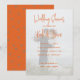 Orangens möhippa bjuds in med ett pars foto som bakgrund. Fotot kommer att täckas av en genomskinlig textpanel som ska visas över bild. Texten är orange med ett mönster av hjärtan på kortets baksida över fast orange.