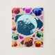 Gulligt porträtt för mopsvalphund som göras i PopArt stilfärger som är församlade för att komponera ett färgrikt Retro vektormönster. Designen/illustrationen tar copyrightt på BluedarkArt.