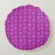En chic, romantisk runda Pillow eller Cushion med en mönster av hjärtan och blommor på magentans bakgrund. Från ett handmålat pappert kollage av Judy Adamson kan detta mönster justeras för att passa vilken pillow eller Cushion som helst.