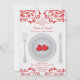 En romantisk inbjudan till ett repetition middagparty. Abstrakt virvlar runt gränsen det bästa, och nedersta av kortet och en para av rött värmer vilar i centrera av plätera. (FP)