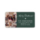 Elegant, Modern Hand-frisyr Returetiketter för Grönt av julfoto i familjen Merry. Med ett söt handskrivet calligraphy swash-svan-typskript med texten "God jul", ett litet kärlek-hjärtmotiv. Underbar för julens julhelg, enkelt att anpassa dem med namn- och returadress-information.