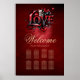 Hjärtsviskare: Kärlek och en liten kattunge.. Stiliserade ord KÄRLEK ökar i stor utsträckning med fet, rött typsnitt, framtagna av mystiska svarta konturer och ornerade blommor som dansar runt brev som ömtåliga senor. Bakgrunden är en djup röd, som påminner om en brasande eld - varm och inbjudande