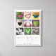 Det hjärtvärmande monogramfotot på canvas är ett utmärkt tillägg till en bröllopsmottagning eller en gåva till nygifta. Anpassa enkelt med din information. Ersätt en eller alla bilder med dina egna. Beskära bilder till en fyrkant innan du laddar upp dem fungerar bäst.