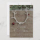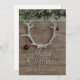 Skicka varmt önskemål med våra vackra hjort antler-helgdagskort. Perfekt för en mysigt, rustik jul. Festila kantrar med julklacksdekorationer på en rustik träbakgrund med bjässning ovan. Lägg till din familj namn, adress och Julhälsningar.