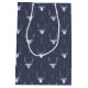 Den här presentsäcken har ett trendig mönster av hjort huvudsilhuetter med kurvbildare, stiliserade pilar och litet snöflingor i en texturerad effekt i nyans av himlar blå och skiffer på marin blå bakgrund. Glad helg och en etikett har angetts som tillval för att lägga till ditt namn och/eller annan text. Sök i ID861 via ID864 om du vill se fler alternativ för färg och andra produkter i den här moderna juldesignuppsättningen.