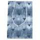 Den här presentsäcken har ett trendig mönster med marinblå silhuetter i hjorten med kurvbildare, stiliserade pilar och små snöflingor på en texturerad bakgrund i nyans av himlar blå. Glad helg och en etikett har angetts som tillval för att lägga till ditt namn och/eller annan text. Sök i ID861 via ID864 om du vill se fler alternativ för färg och andra produkter i den här moderna juldesignuppsättningen.