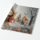 Vackra skogsscenen med en hjort och hennes fawn i snö bredvid Gräs Träd. Det finns en stor fickur som dekoreras med röda bär och en underbar kyrka i bakgrunden.