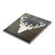 Denna akrylmålning visar ett hjorthuvud på ett bakgrundsnågot liknandeträ