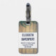 En personlig för bagagemärkning på framsidan och din personliga information på baksidan med ett stil. Designad med en hjort med kantler, gjord av rödplommon. En bild av träplankar med grönt ivy löv för bakgrunden ge är ett outdoorsiskt land.