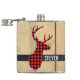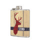Personlig kolv med stil. Designad med en hjort med kantler, gjord av rödplommon. . En bild av träplankar för bakgrunden ge är ett outdoorsiskt land.