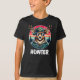 En humoristisk illustration av en hjort som är klädd som jägare, som blandar skogscharm med en lekfull twist. Hjorten bär en kamouflage jacka och ett lock, komplett med reflekterande solglasögon, ge en coola och äventyrlig utseende. Anpassa den här skjortan med ditt namn på baksidan. Ändra eller ta bort jägaren i ord om du vill.