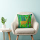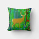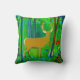 Pillow i en stiliserad illustration av en hjort i en sagda skog, omgiven av träd och växter, i nyanser av brunt och grönt