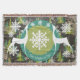 Den vackra julfilten i helgdag har en nattlig himlar med två små stjärnor, vintergrön träd, vit snöflingor, ring av en solid teal med några vita snöflingor och en grönt med mycket litet vitt polka dots. Två vita hjort silhuettes lägger till det här söt helgdag och det finns ett område som du lätt kan anpassa med din familj namn.