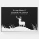 En minimalistisk svart och vit hjort för familj och vänner som deltar i en väckning, begravning eller minnesstund för att fira livet för den älskade som har dött bort. De kan vara borta men inte glömda. Döden är inte slutet. De är alltid i våra hjärtan. De lämnar bakom underbara minnen och historier. Den här enkla och elegant designen är din för att anpassa och anpassa dig efter dina önskemål. Du kan ändra teckensnittet färg, teckensnittet storlekt och teckensnittstypen med hjälp av Verktyg i Design.