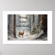 Fint bild i en hjort i skogen som är täckt av snö anges på detta värde poster för vintertid. "Naturens skönhet berör själen". Med vita mattor skulle det vara en underbar gåva till natur älskare för Helgdagarna, vinterdagar och mer!
