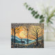Hjort i vinterlandskapet. Abstrakt linoleumskog Helg Vykort