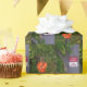 Stora hjortar som är klädda som hjort-jägare i skogen med gevär och "ingen jakt"-skylt