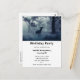 Ett vykort för partiinbjudan med ett foto av en regal hjort där antlers står i en mörk skog. Snö faller hela vägen.