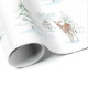 Denna pappra helgdag är täckt av en upprepad vattenfärgsmålning av en charmig hjort i skogsmark med röd näsa och röd båge i svan . Hon går genom en snöskog i gräs där träd dekoreras med stjärnor. Det här är en sorts design som gör alla på presentlistan nöjda. Copyright Leah Wiedemer