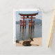 vykort från Itsukushima Shrine, Miyajima, Japan med hjort i förgrunden.