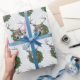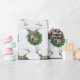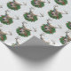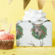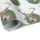Stor buck-hjort i helgdag, krans och röda bär i snöflingor på rustiskt viskött trä