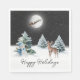 Cute snögubbe, buck hjort och Jultomten i sömnen på måne med snötäcke. Färg i himlar kan ändras. Text kan redigeras.